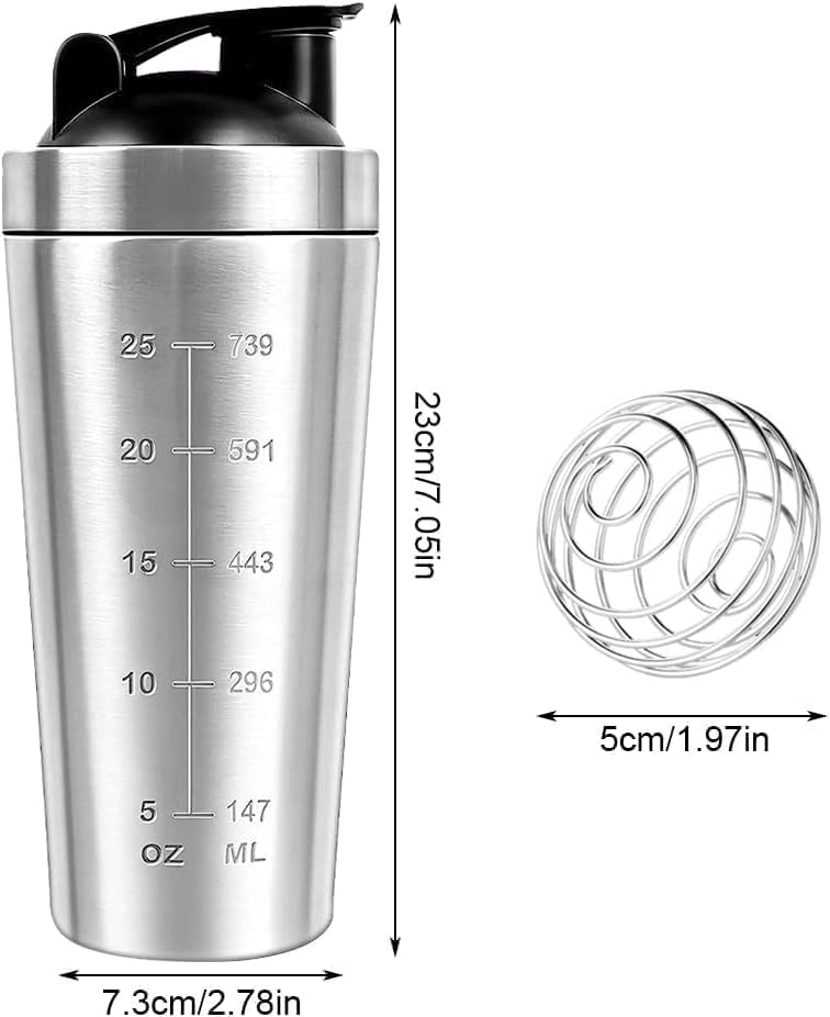 Bouteille shaker de protéines de 750 ml en acier inoxydable pour salle de sport, mélangeur de protéines avec mixball, bouteille d’eau de sport anti-fuite pour homme et femme