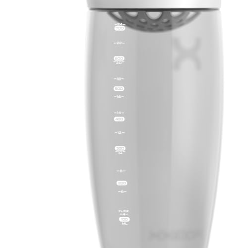 Le shaker PROMiXX PURSUIT allie forme et fonction avec son design élégant et minimaliste. Fabriquée à partir du matériau ECOZEN respectueux de l’environnement, cette bouteille shaker protéinée est aussi durable qu’élégante – offrant une expérience sans BPA, résistante aux odeurs et aux taches qui garde vos shakes protéinés et vos boissons en poudre nutritionnelles fraîches et propres. Ses contours sophistiqués et sa sangle de transport intégrée offrent confort et commodité, tandis que le joint étanche garantit l’absence de déversement, que ce soit dans votre sac de sport ou pendant votre entraînement. Avec une capacité de 700 ml/24 oz, le PROMiXX PURSUIT va au-delà des shakes protéinés. C’est un shaker parfait pour les smoothies simples, les compléments nutritionnels, les substituts de repas ou même pour préparer de la pâte à crêpes et des vinaigrettes. Les graduations intuitives (ml/oz) facilitent le mélange de votre boisson parfaite à chaque fois. Et grâce à l’agitateur silencieux à clipser, non seulement vos shakes seront onctueux et sans grumeaux, mais la PURSUIT est également la bouteille de sport la plus facile à nettoyer. Retirez simplement l’agitateur du mixeur à bouteille. Vous remarquerez que la conception de la bouteille de protéines est arrondie, il n’y a donc pas de coins difficiles à atteindre. Vous pouvez également simplement les placer dans le panier supérieur de votre lave-vaisselle. Que vous vous entraîniez ou travailliez au bureau, PURSUIT est le shaker tout-en-un ultime pour les shakes protéinés, l’hydratation quotidienne et les compléments nutritionnels. PROMiXX PURSUIT : le seul shaker protéiné qui incarne la simplicité, la fonctionnalité et l’élégance.