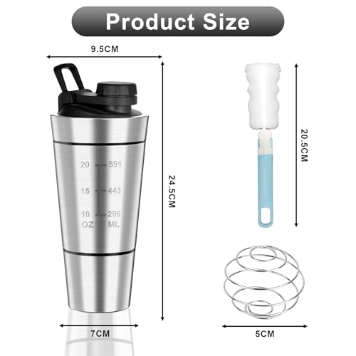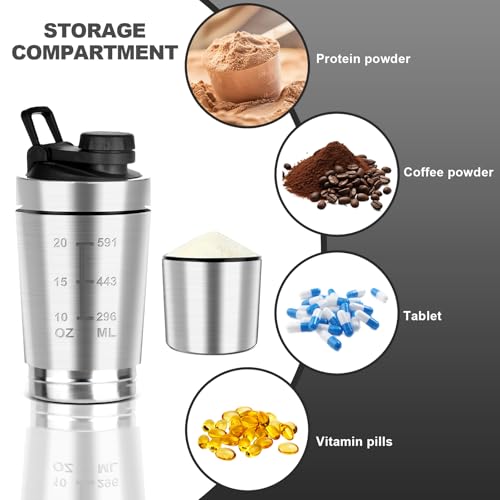 Shaker Proteine Inox – 600+200ML Shaker Proteine avec Compartiment à Poudre, Sans BPA avec Graduation, Double Paroi, Shaker Proteine en Acier Inox pour Shaker Proteine, Diététiques et Fitness