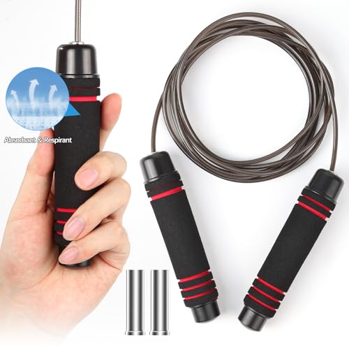 Corde à Sauter, Speed Jump Rope Réglable pour Hommes & Femmes, Poignées Antidérapantes en Mousse, Câble en Acier pour Fitness, Crossfit, Sport, Boxe, GYM
