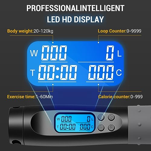 【Affichage du Compteur Numérique Intelligent】Poids corporel, nombre de sauts, temps d’entraînement, consommation de calories. La corde à sauter est l’un des entraînements les plus efficaces pour brûler les calories que vous puissiez faire. Notre corde à sauter de sport développe votre endurance cardiorespiratoire, vos jambes, vos bras, votre tronc et votre cerveau, tout en améliorant le tonus musculaire dans tout votre corps.