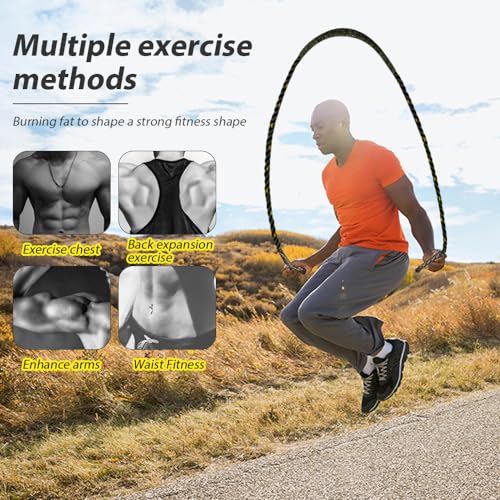 💪【Le meilleur choix pour le fitness】 La corde à sauter lestée pour adultes est le meilleur équipement pour votre entraînement. La combinaison de la corde à sauter et de la charge de poids aide à entraîner tout le corps, à accélérer la combustion des graisses, à entraîner tout le corps et à améliorer la sensation de force pour perdre du poids et façonner le corps. Battle jump rope 5 minutes d’utilisation équivalent à 30 minutes d’une corde à sauter normale.
