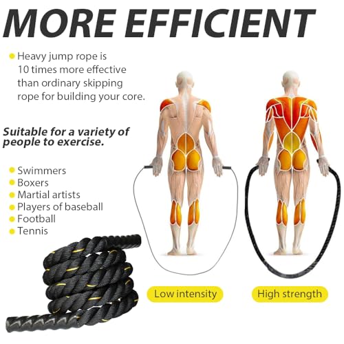 Battle Jump Rope, Corde à Sauter Lourde Adultes pour l’entraînement, 1,12 kg, Corde à Sauter Adulte, corde battle rope pour une meilleure résistance, corde de fitness, perte de poids