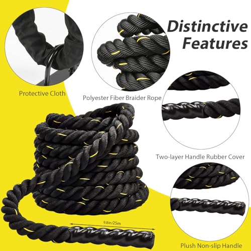 💪【Description de la taille de la corde à sauter de combat】 Vous recherchez un équipement de fitness pour un usage domestique ou extérieur ? Notre corde à sauter lourde pour l’entraînement mesure 25 mm x 2,8 m de long et pèse 1,12 kg. Avec la corde à sauter lestée, vous pouvez faire de l’exercice à tout moment, n’importe où sans avoir à aller à la salle de sport !