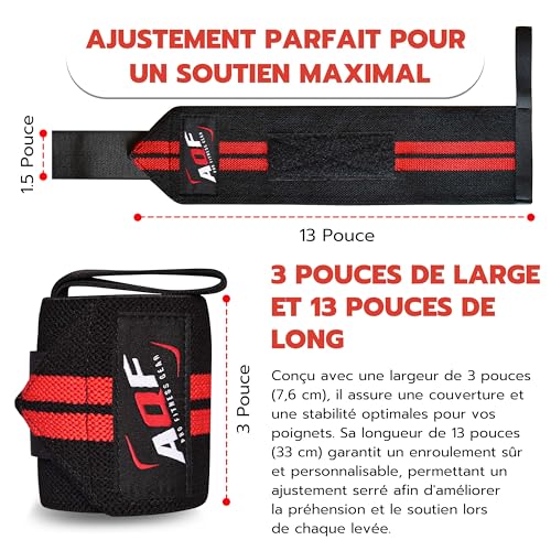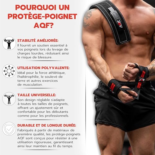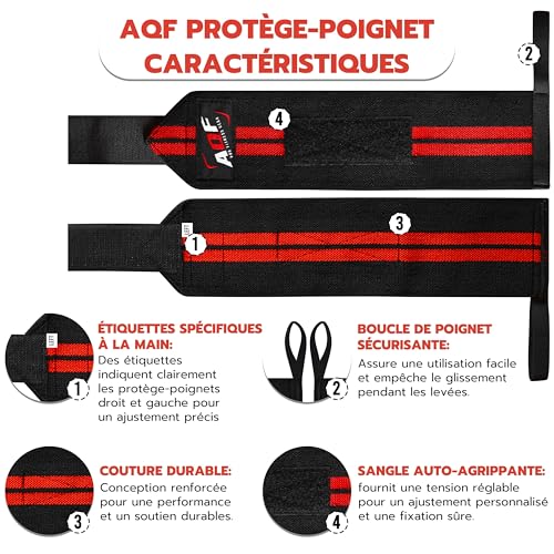 AQF Les bande poignet sont rigides, mais flexibles pour soutenir votre poignet tout en maximisant le potentiel de levage. Un accessoire de gym indispensable pour protéger vos poignets des blessures et atteindre vos objectifs.