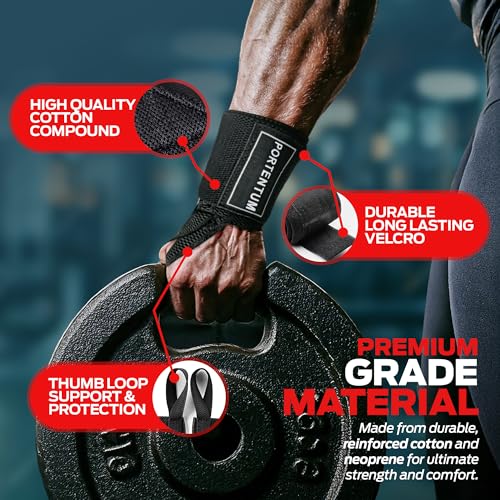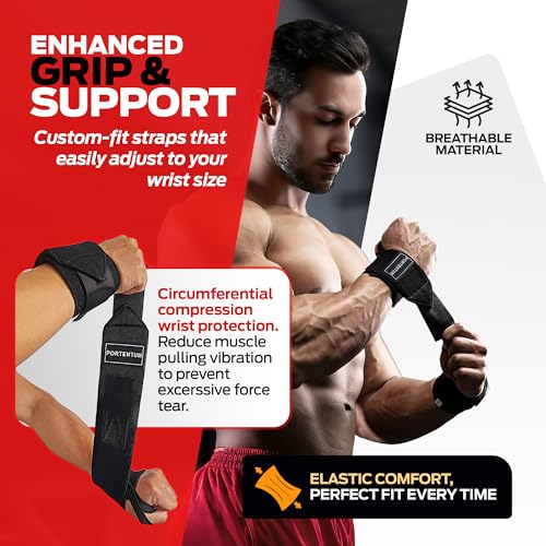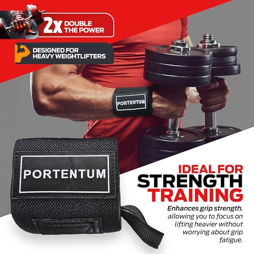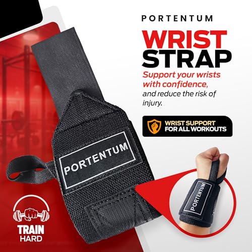 PORTENTUM Wrist Wraps Bande Poignet Musculation Unisex-Adult, Noir, Une Taille Unique Convient à Tous