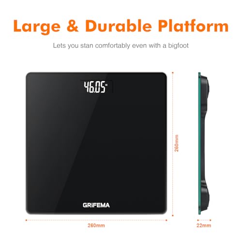 [Haute qualité] Verre trempé super résistant de 5 mm, plate-forme confortable de grande taille de 260 x 260 mm pour garantir une mesure sûre.