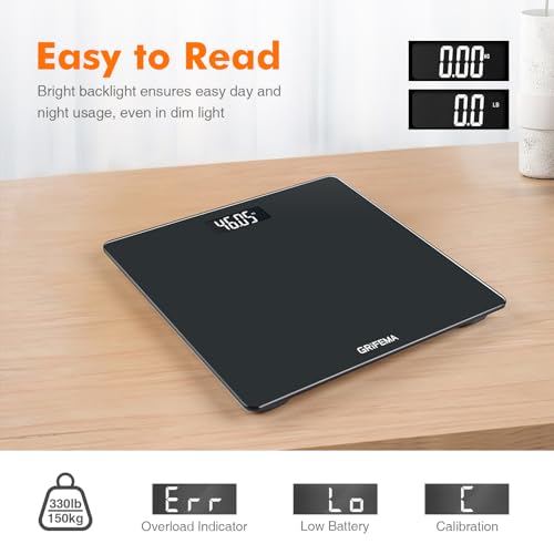 GRIFEMA GA2001-1, Balance Pese Personne Numérique, Affichage Clair, Haute Précision, Capacité de Pesée Maximale de 150 kg/330 lbs, Noir