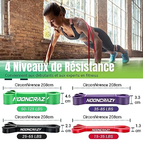 【Convient pour différents exercices】Nos bandes de résistance ont 4 niveaux de résistance : Ultra Light (rouge)/15-35LBS, LIGHT(noir)/25-65LBS, MEDIUM (violet)/35-85LBS, FORT (vert)/ 50-125LBS. Que vous soyez débutant ou professionnel, notre bande de fitness vous offre plus de flexibilité et plus d’options pour les entraînements et les exercices. Vous pouvez basculer entre les quatre niveaux à tout moment.