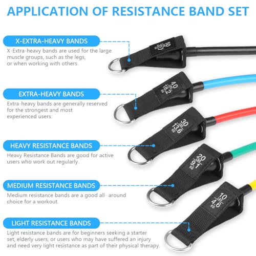 【Bandes de résistance empilables à 5 niveaux】L’ensemble de bandes d’assistance à la traction est disponible en 5 couleurs différentes de bandes et de niveaux (jaune 10 lb, vert 20 lb, rouge 30 lb, bleu 40 lb, noir 50 lb). La résistance peut être ajustée de 10 lb à un maximum de 150 lb. Vous pouvez facilement personnaliser votre entraînement en fonction de votre force, de vos capacités et de votre niveau de confort.