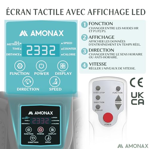 [Entraînements Bidirectionnels] – Avec Amonax velo elliptique, basculez sans effort entre les rotations avant et arrière. Cette fonctionnalité cible différents groupes musculaires, garantissant un entraînement équilibré du bas du corps. La polyvalence offre un programme d’exercices dynamique adapté à tous les utilisateurs.
