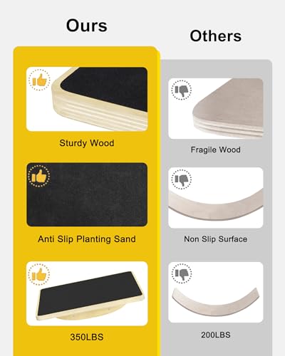 Le dessus de chaque planche d’équilibre Rocker dispose d’une surface adhérente qui protège les pieds nus, mais aide à vous maintenir en place en toute sécurité et fermement.
