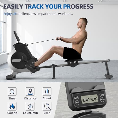 【Construction solide et mouvement de glissement fluide】 ce rameur dispose d’un siège stable et confortable qui roule en douceur le long du rail coulissant en aluminium, ainsi que d’un guidon résistant à la transpiration et de repose-pieds réglables antidérapants pour une stabilité supplémentaire. Il est équipé d’un moniteur LCD pour suivre des mesures telles que les calories, le temps et le nombre, etc. Ajustez facilement la résistance, vous pouvez créer le plan d’entraînement parfait à la maison.