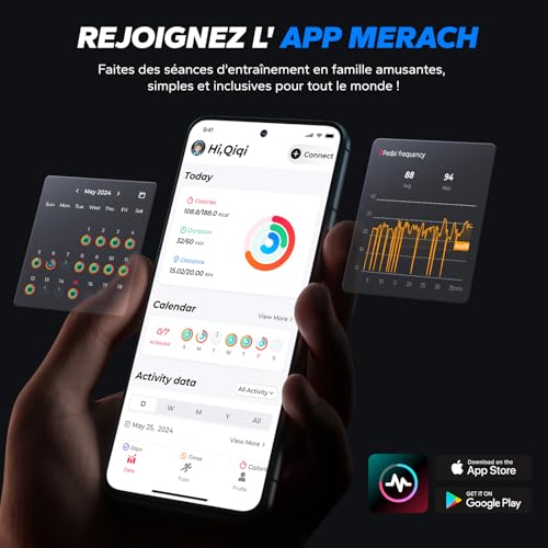 Surveillance Intelligente des Données : Le grand écran affiche clairement les données d’entraînement, permettant un suivi en temps réel de vos progrès. Connectez-vous via Bluetooth à l’application MERACH pour enregistrer et analyser facilement vos performances.
