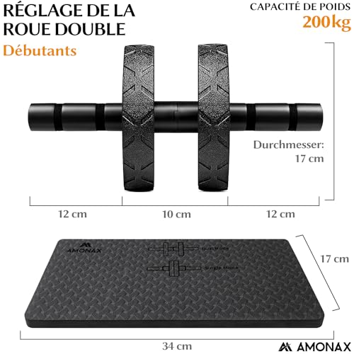 AMONAX Roue Abdominale Convertible, Ab Roller Wheel, Roulette Abdominaux Exercice pour Abdominaux, Roue de Fitness pour Musculation Sport Maison Materiel pour Homme Femme