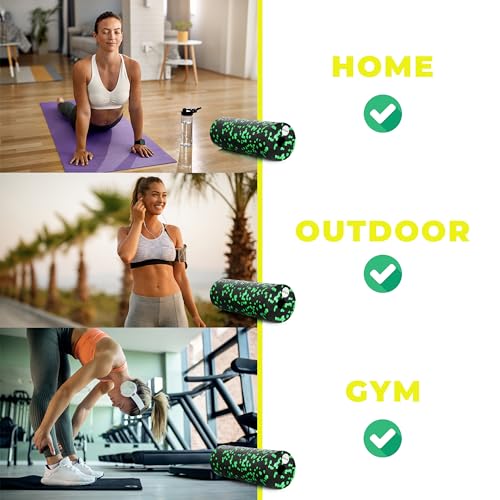 Rouleau de fascia pour le fitness, le yoga et la rééducation, rouleau d’automassage pour le dos et la colonne vertébrale, Foam Roller en mousse EPP moyennement dure (Vert, 15 x 15 cm)