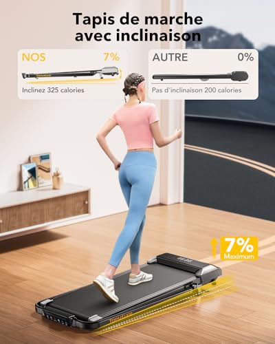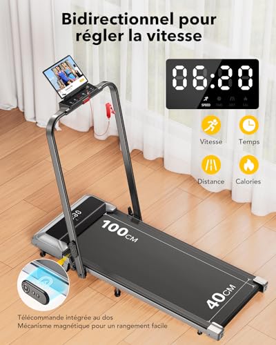 Tapis de Course 2en1,Walking Pad 12 km/h,Pente 7%,2.5HP,Tapis Roulant électrique Pliant,Extra Large 40cm, Fonction de Mémoire Données,APP&Télécommande