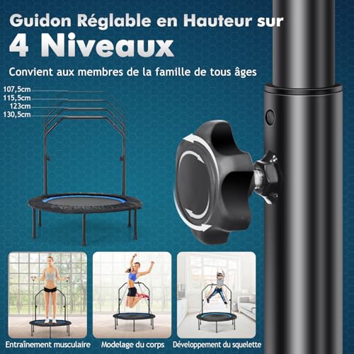 ﹟𝐏𝐨𝐢𝐠𝐧é𝐞 𝐑é𝐠𝐥𝐚𝐛𝐥𝐞𝐬 𝐞𝐧 𝐌𝐨𝐮𝐬𝐬𝐞 ﹟ La poignée à 4 hauteurs réglables (102/110/118/126 cm) peut être utilisée par des personnes de différentes tailles, ce qui permet à toute la famille de s’entraîner. De plus, la mousse empêche tout glissement lors de l’utilisation.