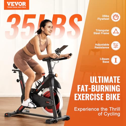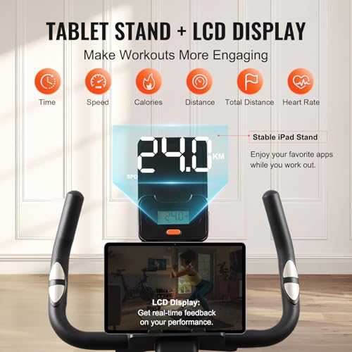 VEVOR Vélo d’Appartement Stationnaire, Vélo de Biking à Résistance Magnétique Réglable, avec Transmission par Courroie Silencieuse, Siège Confortable, LCD et Volant d’Inertie Lourd, pour Domicile