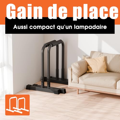 RAPIDE ET FLEXIBLE À UTILISER : Les barres de dips DH FitLife se montent facilement, se rangent de manière peu encombrante et se transportent aisément. Que ce soit à l’intérieur ou à l’extérieur, votre entraînement est possible à tout moment et partout. Connectez-vous avec d’autres passionnés de fitness et faites passer vos séances d’entraînement au niveau supérieur !