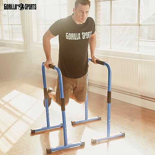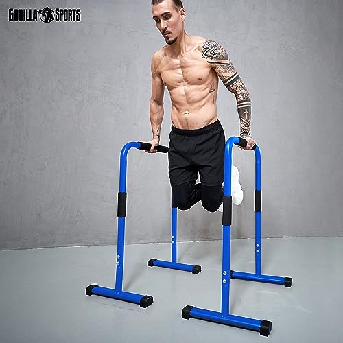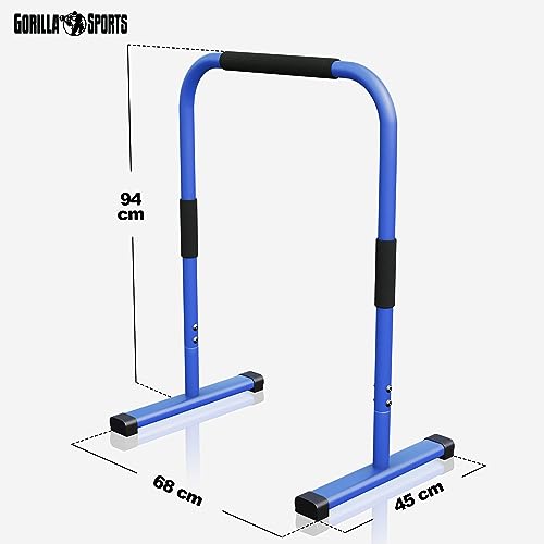 GORILLA SPORTS® Barres Parallèles – Paire, Hauteur 94 cm, Charge Max 200kg, Acier Haute, Noir/Bleu/Rouge – Station de Dip Parallettes, Dips Stand, Push Up Bars, Calisthenics, Musculation, Fitness, Gym