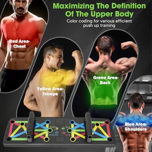POSKOU La planche de pompes a un code couleur spécialement conçue pour cibler différents groupes musculaires (poitrine, épaules, abdominaux, biceps, dos). Elle vous permettra de faire de la musculation, des exercices de résistance et des exercices cardio directement dans le confort de votre maison