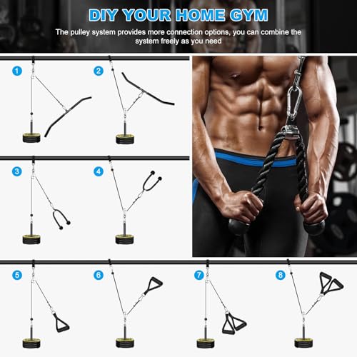 【Des méthodes d’exercice variées】FASPUP poulie musculation avec poulies, cables et autres accessoires de poulie home gym. Avec différentes méthodes d’installation, vous pouvez DIY poulie triceps musculation pour l’entraînement, comme biceps curl, triceps pull down, lat & lift, row. Peut vous aider efficacement à travailler l’ensemble des muscles de votre corps et à construire votre centre corporel.