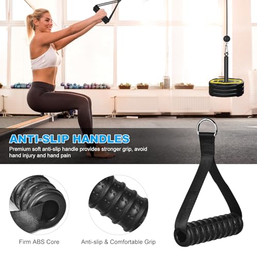 【Trois fixations de câble amovibles】 FASPUP poulie haute musculation vous offrent 3 poignées amovibles, de sorte que vous pouvez librement changer l’installation que vous voulez ; 1. Corde triceps : pour trainging triceps, biceps, épaules. 2. Poignées de cable : Travailler les pectoraux latissimus dorsi. 3. Barre tirage dos : exercice en arrière, bras et avant-bras force.