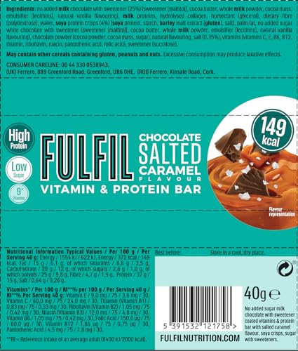 FULFIL – Barre Protéinée avec Vitamines – saveur Chocolat & Caramel Salé – Barre fonctionnelle et gourmande – Facile à Emporter – 15 Barres de 40g