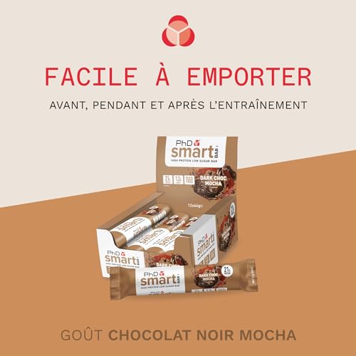 Soyez le premier à laisser votre avis sur “PhD Nutrition Smart Bar Barre protéinée 12x64g Chocolat noir et moka – En-cas High Protein avec 21g de protéines et peu de sucre, Barre protéinée macro-friendly”
