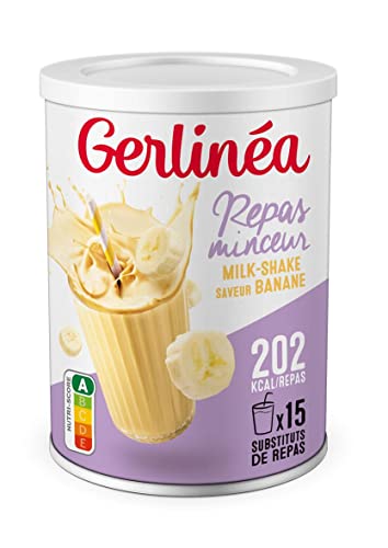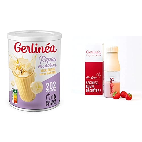 Gerlinéa Boisson Milkshake goût Banane + Shaker, Substituts de repas riche en protéines Poudre à reconstituer contient 15 repas, Shaker inclus