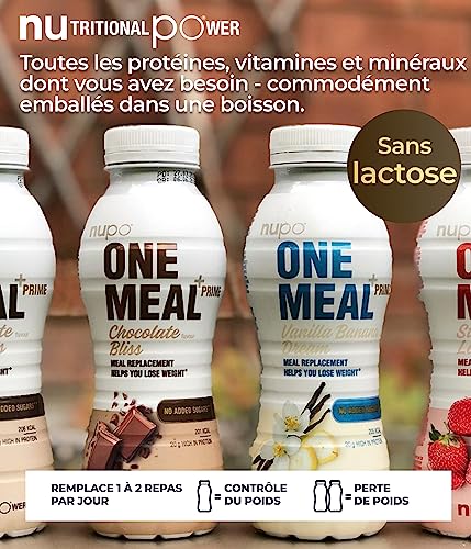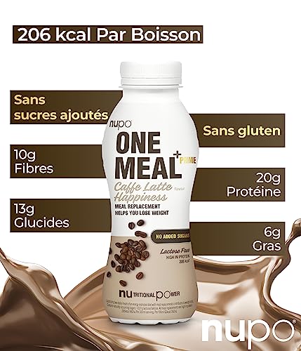 NUPO One Meal + Prime Café Latte I Shake prêt à boire I Savoureux shake substitut de repas avec 24 vitamines et minéraux I Riche en protéines I Sans sucre ajouté I 12 x 330ml