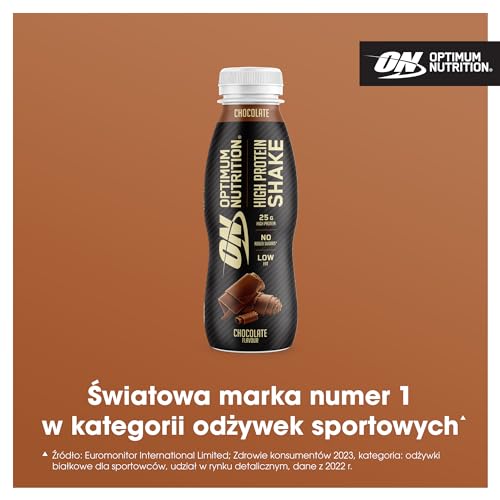 Optimum Nutrition ON High Protein Shake, Boisson Protéinée avec Whey Protéine sans Sucre Ajouté, Milkshake Prêt à Boire, Saveur Chocolat, Carton de 12, 12x330ml