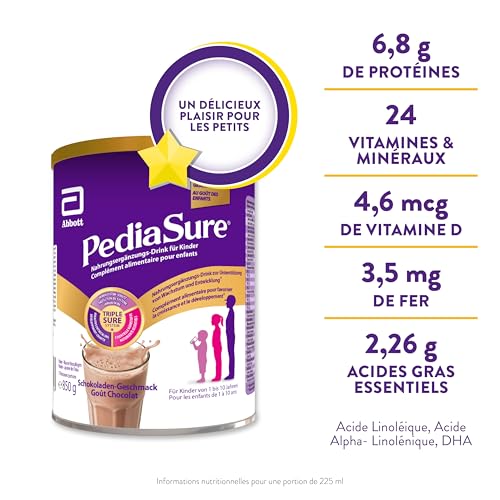 Contenu de la livraison: 1 x 850 g de PediaSure Shake Chocolat / Convient aux enfants de 1 à 10 ans / Préparation variée / Sans gluten