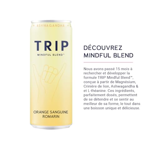 TRIP Mindful Blends – Boisson pétillante à l’orange sanguine et au romarin avec Citrate de magnésium + Ashwagandha. Faible en calories et végétaliennes (pack de 12 x 250ml)