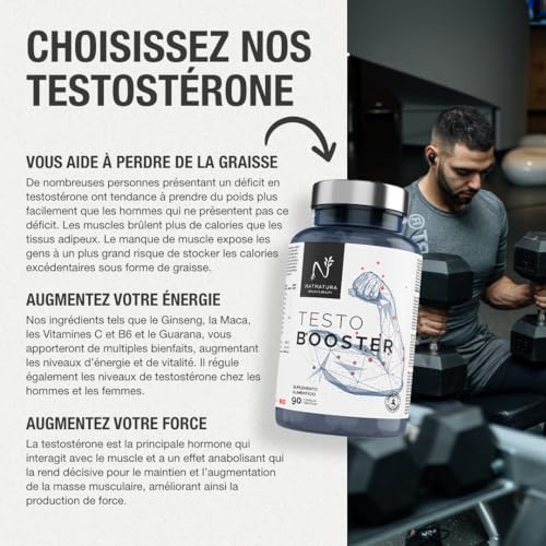 ÉNERGIE ET ​​PERFORMANCE MAXIMALES : Le complément Testobooster de Natnatura Health & Beauty contient des ingrédients actifs qui vous aideront à optimiser et à tirer le meilleur parti de vos entraînements. Grâce au Ginseng, Tribulus et Maca entre autres, qui régulent le métabolisme et encouragent la génération de testostérone pour que rien ne vous arrête.