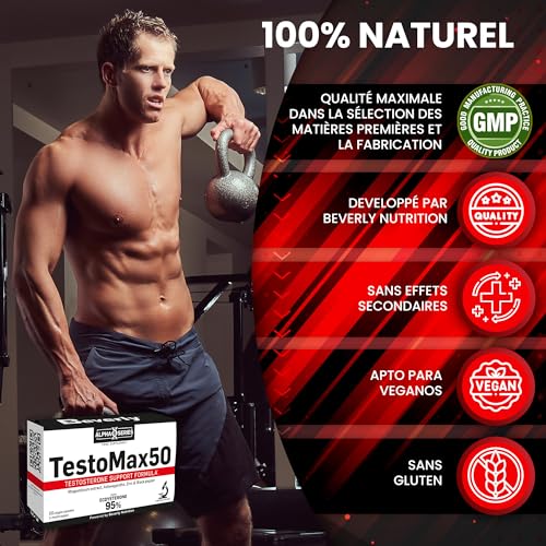 ✅100% NATUREL : TestoMax50 est le dernier anab. naturel développé par Beverly Nutrition, précurseur de masse musculaire et de force, le plus révolutionnaire du marché. TestoMax50 est un produit 100% naturel avec lequel vous obtiendrez de réels gains de masse musculaire avec la sécurité de prendre un produit sans effets secondaires. TestoMax50 se distingue également par une augmentation considérable de la force et une réduction du temps de récupération après un entraînement de haute intensité. 100% naturel.