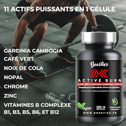 Active Burn – extra puissant – Métabolisme – Énergie – Garcinia Cambogia – Café vert – Nopal – Noix de Cola – 7 Vitamines et minéraux 120 gélules