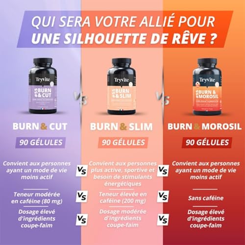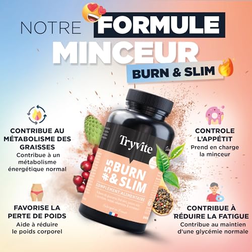 Bruleur de Graisse Homme Femme | Coupe Faim Puissant et Efficace Minceur Perte de Poids Rapidement | TRYVITE BURN&SLIM | 90 gélules