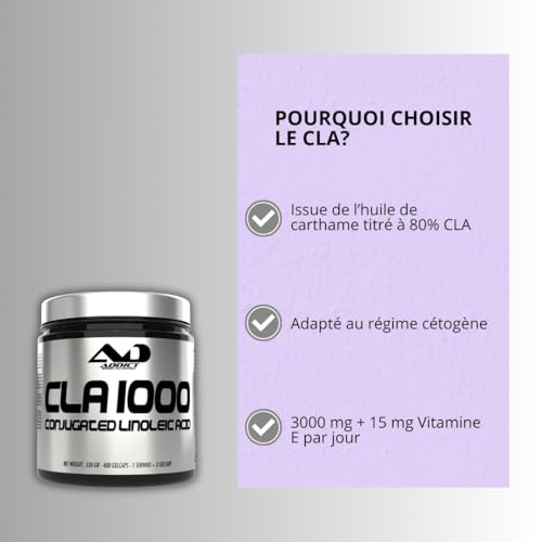 CLA 1000 mg – Acide Linoléique Conjugué (CLA) – Brûleur de Graisse Naturel – Cla Bruleur de Graisse – Vitamine E – Addict Sport Nutrition (120 capsules) – omega 6 – huile de carthame