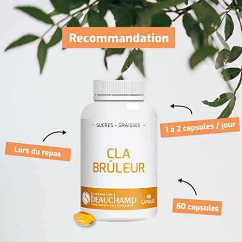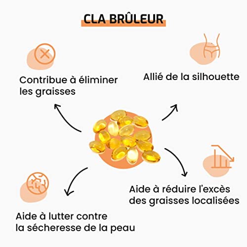 Complément alimentaire CLA BRULEUR – 60 capsules – Élimination des graisses – Belle silhouette – Aide à réduire l’excès des graisses localisés – Développé en France