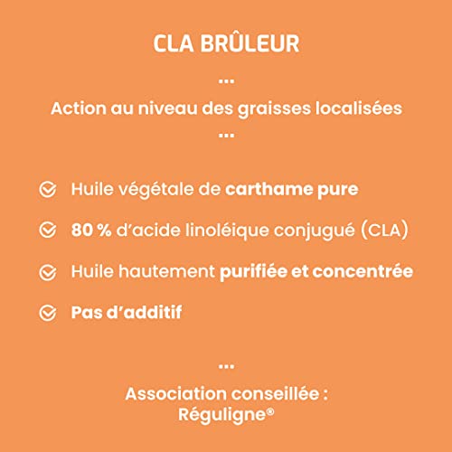 Qu’est-ce que le CLA BRÛLEUR ? CLA Brûleur est composé d’huile de carthame 100 % pure et naturelle. L’huile de carthame est extraite des graines qui sont naturellement concentrées en acide linoléique conjugué (ou CLA).