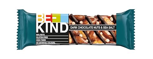 BE-KIND Dark Chocolate Nuts & Sea Salt BE-KIND, le goût du bon ! Notre barre BE-KIND a une recette simple pour réussir : pleine de saveurs et avec des ingrédients que l’on peut voir et prononcer. La barre BE-KIND, c’est l’encas gourmand et pratique par excellence. Sans gluten, riche en fibres, sans colorants, sans conservateurs et sans arômes artificiels. Détails du produit : Saveur : Chocolat noir, noix & sel de mer Des ingrédients que l’on peut voir et prononcer Sans gluten 60 % de fruits à coques – un goût authentique Haute teneur en fibres Pas de colorants, de conservateurs ou d’arômes artificiels BE-KIND – Le goût du bon ! BE-KIND un état d’esprit. Une communauté. Grâce à notre Fondation KIND et à nos actions à travers le monde, nous essayons de rendre le monde un peu meilleur. C’est la recette de notre succès, et nous avons hâte de la partager avec vous.