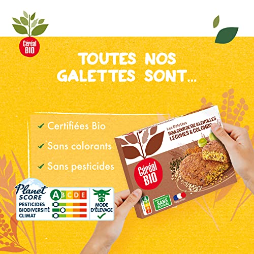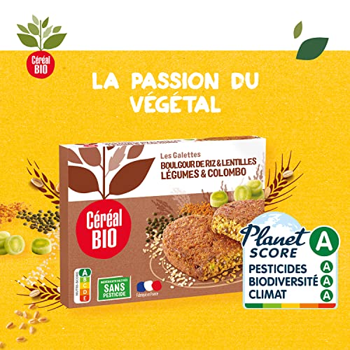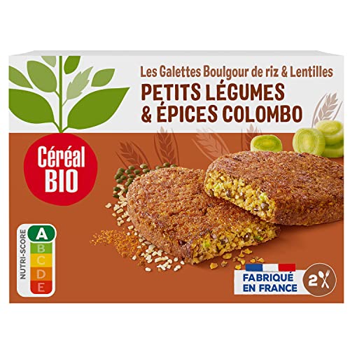Céréal Bio Galettes Boulgour de Riz & Lentilles, Légumes & Colombo – Végan et Bio – Simple et Rapide à Réchauffer – 200g (2 x 100g) – 197647