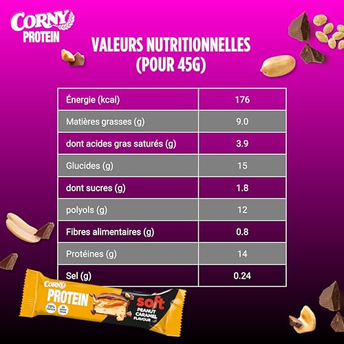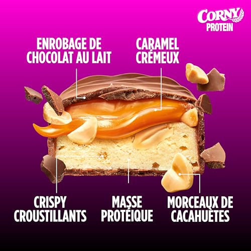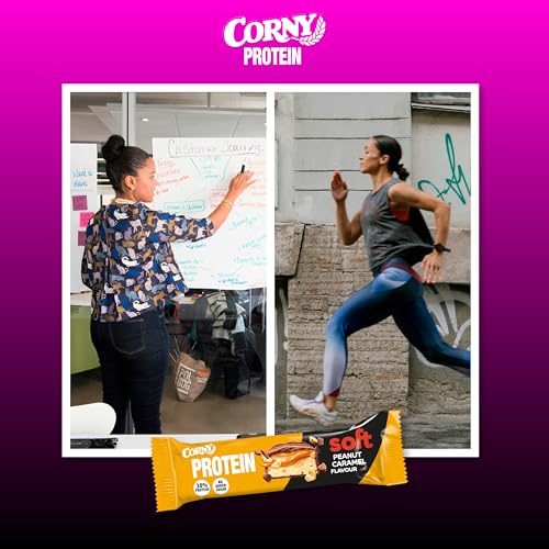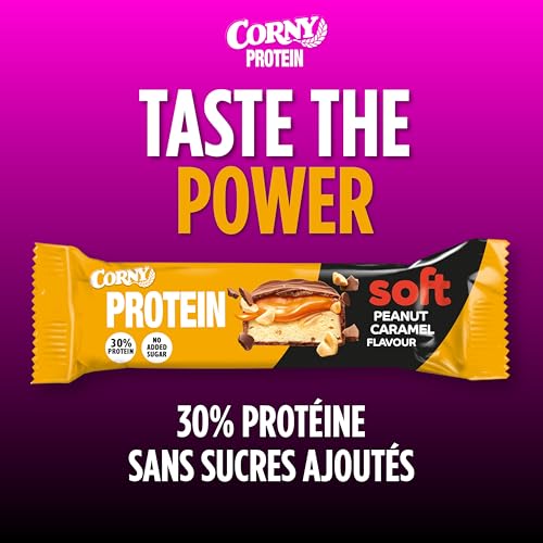 Corny Protein Soft- Barres protéinées au chocolat au lait, caramel et cacahuètes, 30% protéines, 0% de sucres ajoutés, Pack de 12x45g, Taste the Power
