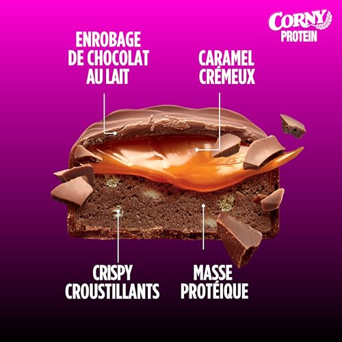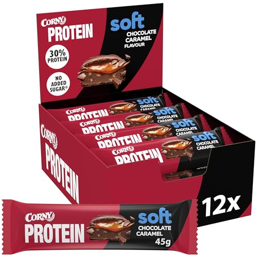 Corny Protein Soft- Barres protéinées au chocolat au lait et caramel, 30% protéines, 0% de sucres ajoutés, Pack de 12x45g, Taste the Power