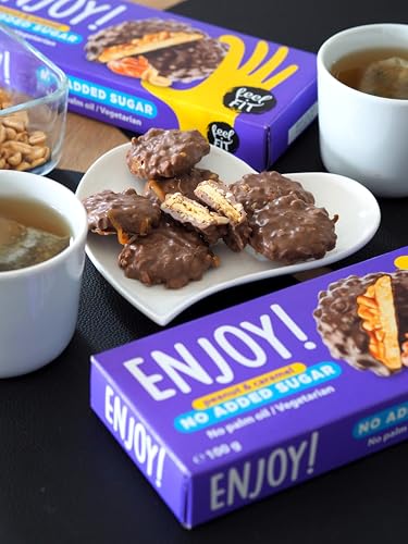 GÂTEAUX SANS SUCRES AJOUTÉS – Des sucreries Enjoy ! Peanut & Caramel procurent un plaisir sucré, bien qu’ils ne contiennent pas de sucre. Ces bonbons sans sucre ajouté doivent leur goût sucré au maltitol d’origine naturelle, qui remplace efficacement le sucre malsain. Il est important de noter que grâce au maltitol, les biscuits ont un indice glycémique plus bas, contiennent moins de calories et ne provoquent pas de caries.