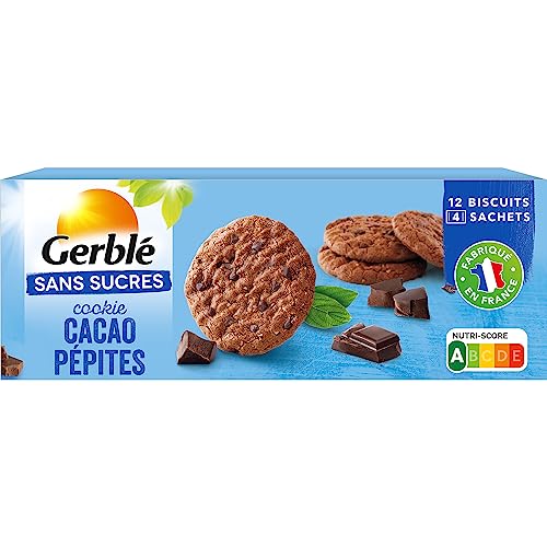 Contenu : 1 x Gerblé Cookies Cacao Pépites Sans Sucres, 4 x 3 biscuits, Poids : 130 g, 197736