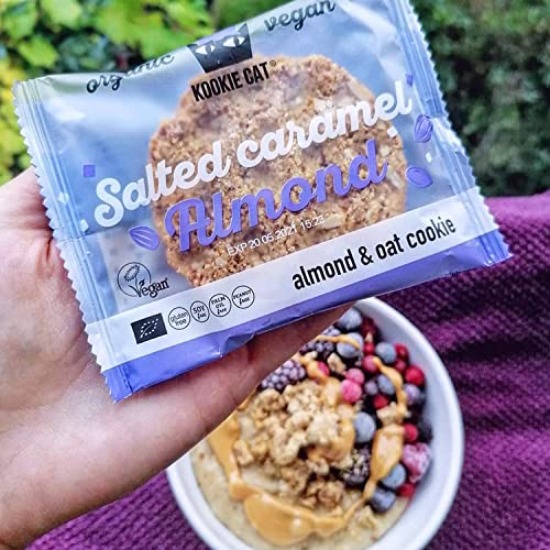 Kookie Cat Caramel Salé Amande-Biscuits Végétaliens Emballés Individuellement, Sans Gluten, Sans Soja, Biologique, Amande & Avoine-12 X 50g Multipack