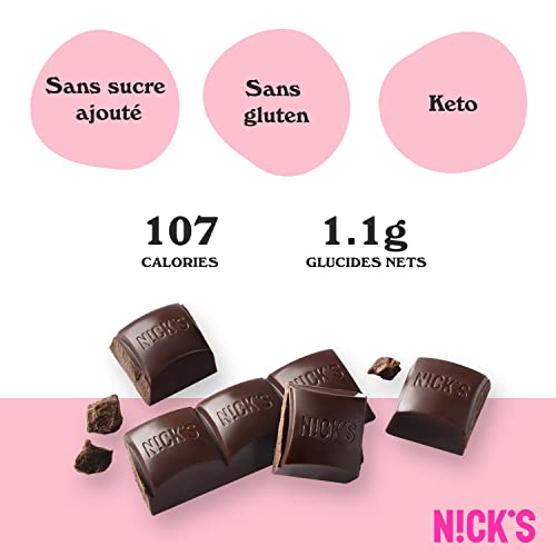 NICKS Barre Keto Chocolat Noir Sans Sucre Ajouté, Vegan, Sans Gluten, Sans Huile De Palme, Low carb |107 kcal,1g Net carbs (15 x 25g)